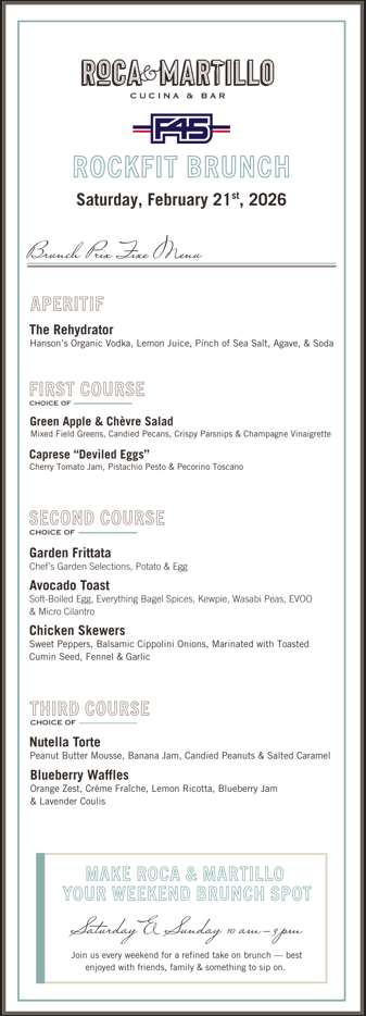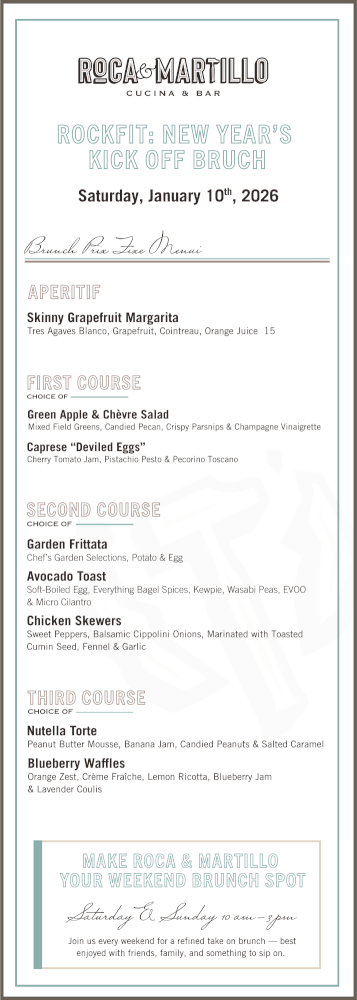 Show your RockFit Ticket to your server to purchase this special brunch spread. Includes a complimentary mimosa for guests 21+ years old.