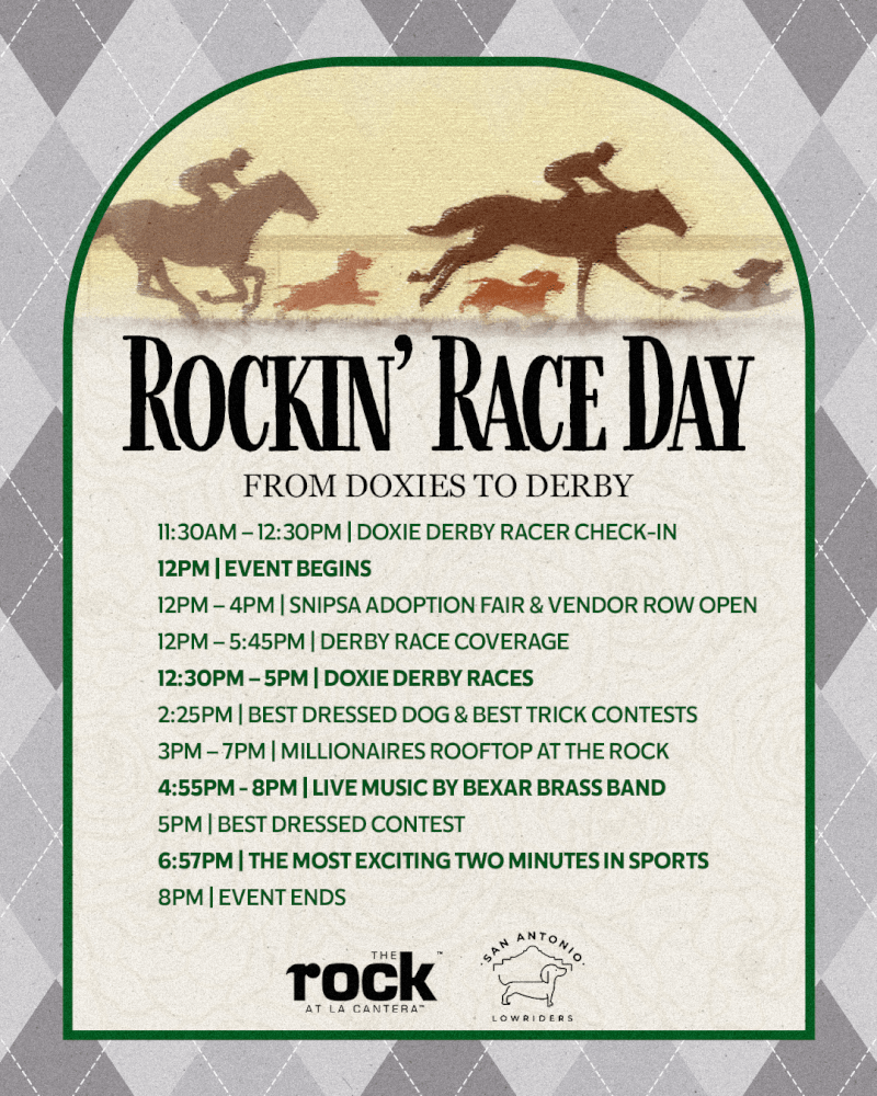 From the fan-favorite Doxie Derby to the high-stakes excitement of the “Run for the Roses,” Rockin’ Race Day at The Rock at La Cantera is a full-day celebration you won’t want to miss. Join us on Saturday, May 2, as the ultimate race day comes to life with high-energy dachshund races, live music from the Bexar Brass Band, and all-day Derby coverage on the big screen, mint juleps and more.